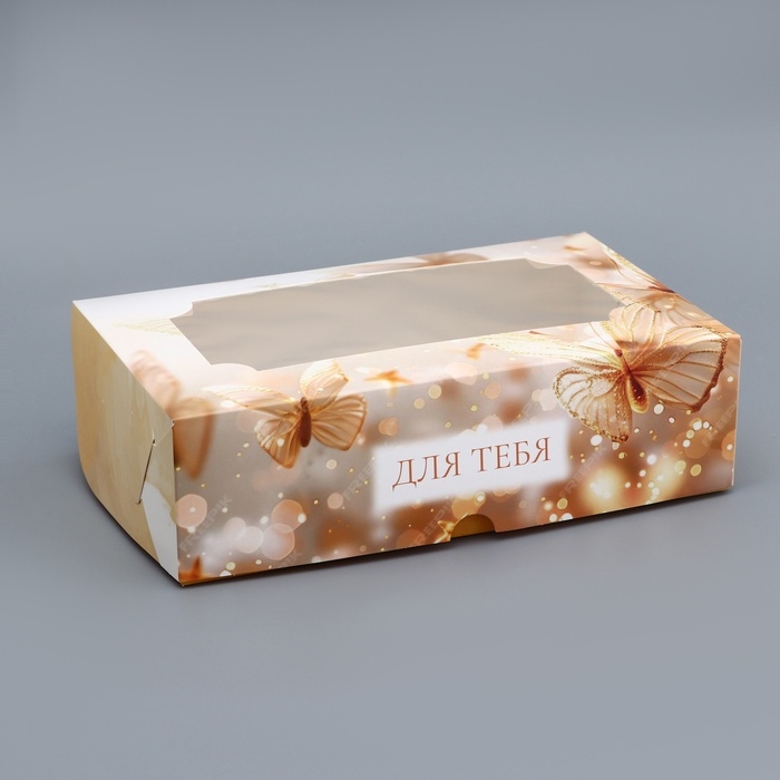 Коробка подарочная складная с окном, упаковка, "Бабочки", 25 х 15 х 7 см