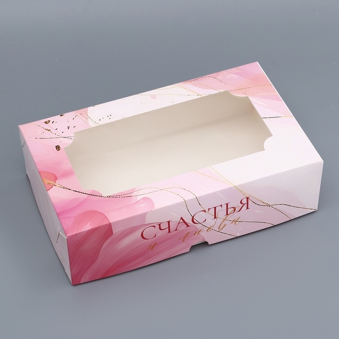 Коробка подарочная складная с окном, упаковка, "Счастливых моментов", 25 х 15 х 7 см