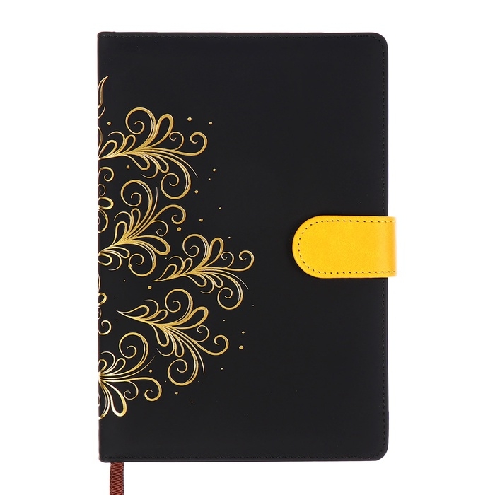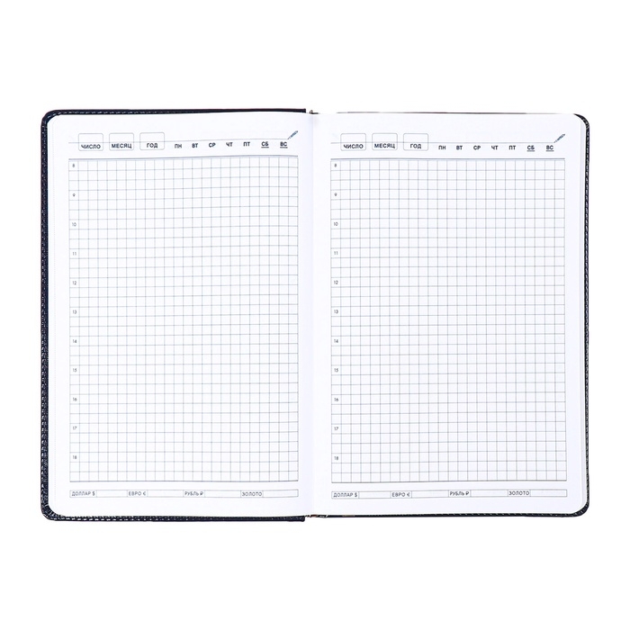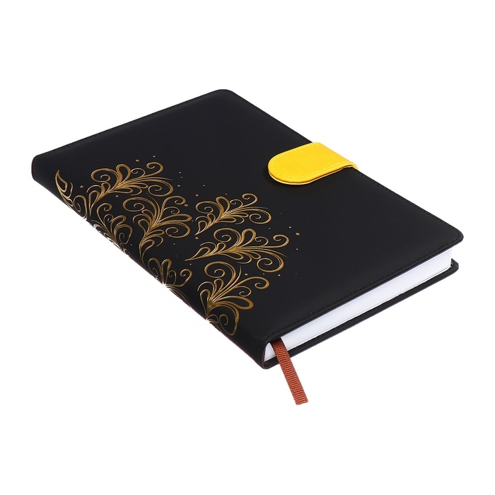 Ежедневник недатированный, обложка ПВХ, формат А5, 140 л, клетка, с хлястиком, Черный