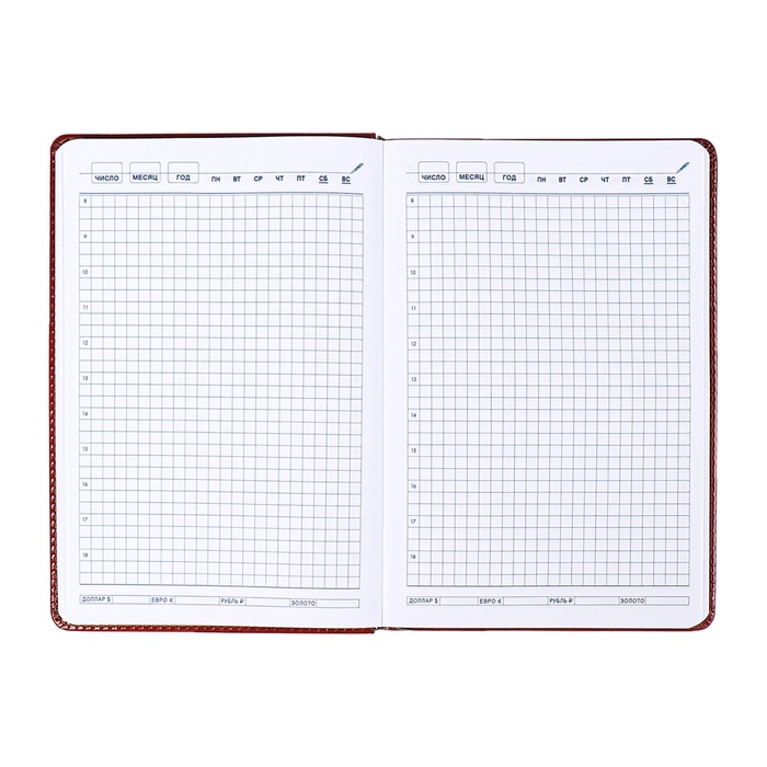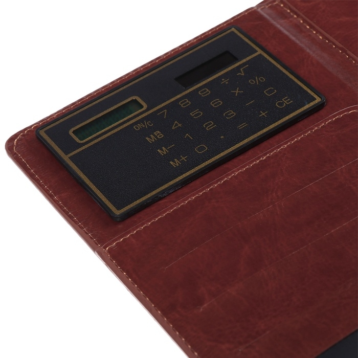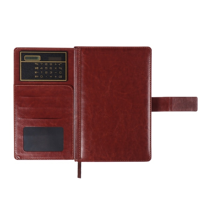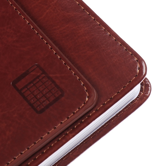 Ежедневник недатированный,формат А5, 140 листов, в клетку, обложка кожзам, с хлястиком, с калькулятором, коричневый