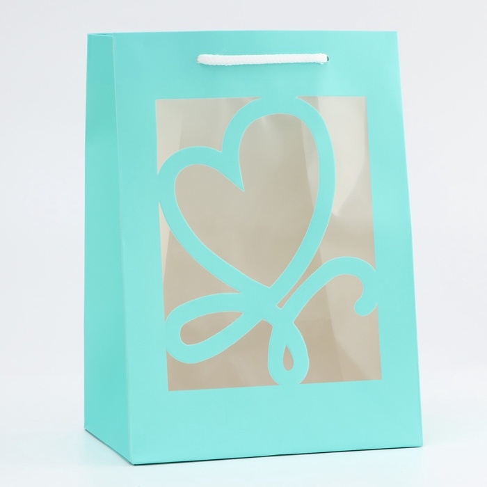 Пакет подарочный с фигурным окном, 18 х 13 х 25 см, голубой