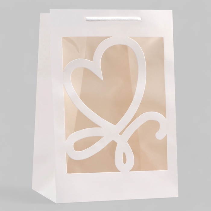 Этот нежный крафтовый бумажный пакет с фигурным окном в форме сердца создан для тех, кто ценит уют и романтику.