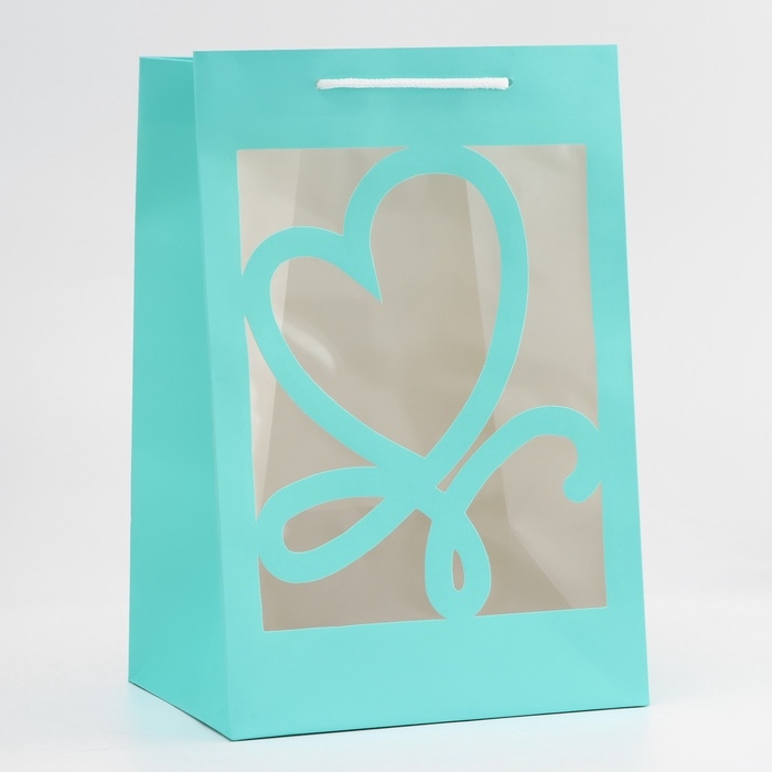 Пакет подарочный с фигурным окном, 20 х 16 х 30 см, голубой