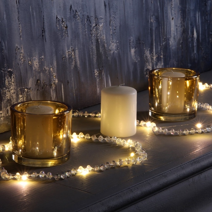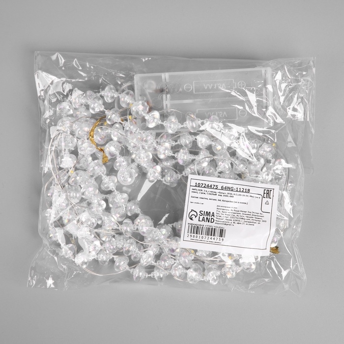 Гирлянда «Нить» 2 м роса с насадками «Бусы», IP20, нить серебристая, 20 LED, батарейки AAx2 (не в комплекте), 2 режима, свечение тёплое белое
