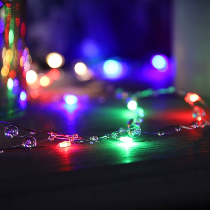 Гирлянда «Нить» 5 м роса с насадками «Шарики», IP20, нить серебристая, 50 LED, 8 режимов, свечение мульти, 220 В