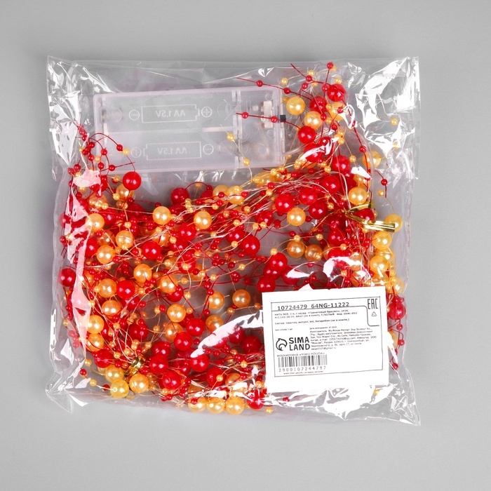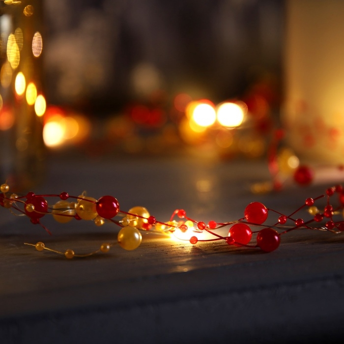 Гирлянда «Нить» 2 м роса с насадками «Гранатовый браслет», IP20, нить серебристая, 20 LED, батарейки AAx2 (не в комплекте), свечение тёплое белое