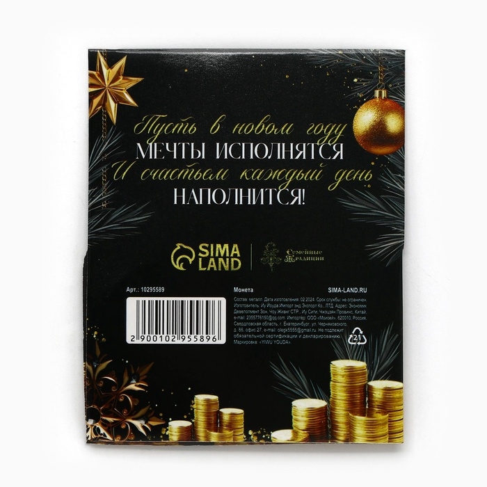 Монета новогодняя "Изобилия в деньгах", диам. 4 см