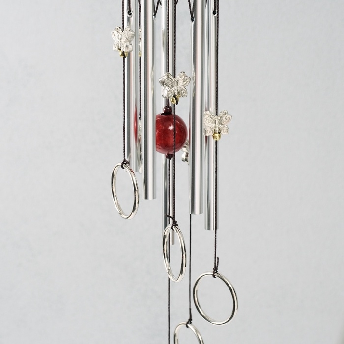 Музыка ветра металл "Кольца с бабочками" 5 трубок 68 см