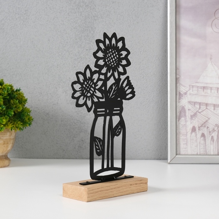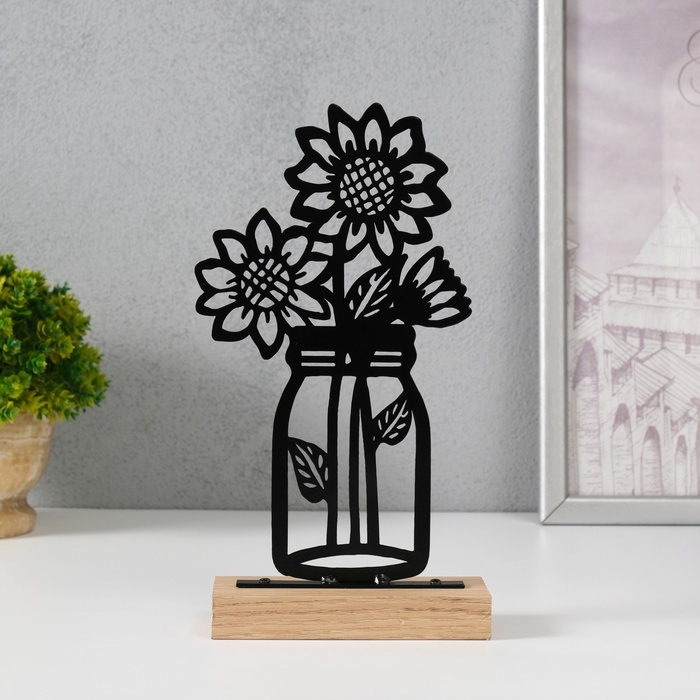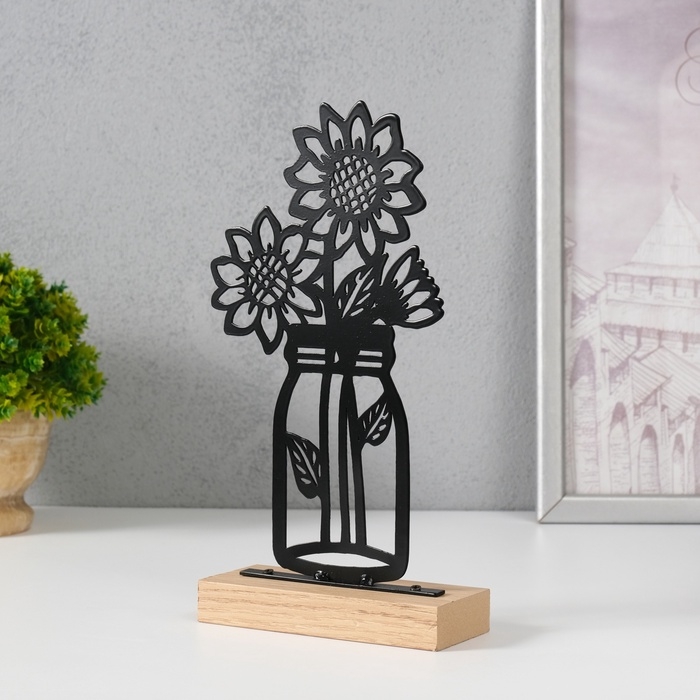 Сувенир металл "Подсолнухи в банке" чёрный 5х11,5х22 см
