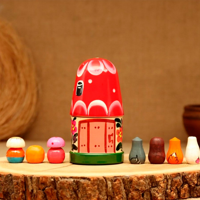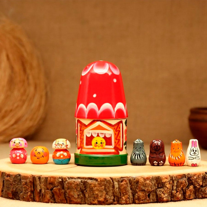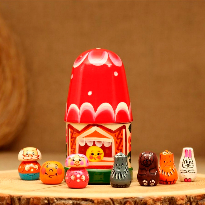 Куклы-матрёшки представляют собой героев русских народных сказок. Игрушка научит отличать большое от малого, строить фигуры в ряд по величине: от меньшего к большему, поможет малышу запомнить героев сказки и научиться разыгрывать её.