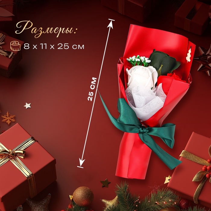Подарите магию новогодних праздников и насладитесь красотой и уютом с нашим букетом мыльных роз.
