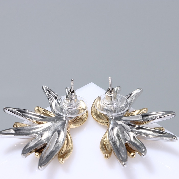 Серьги металл "Стиль" пальма, цвет серебряно-золотой