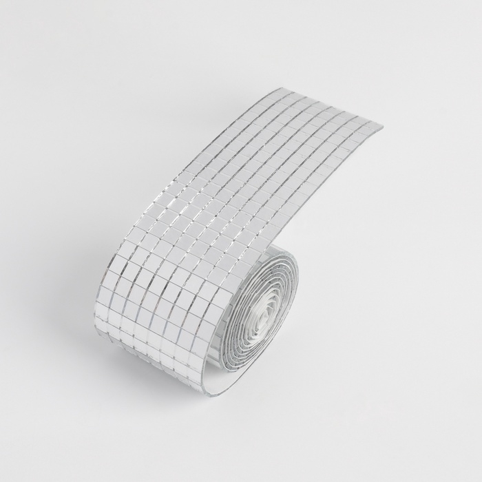 Зеркальная мозайка клеевая, 0,5 × 0,5 см, 8 рядов 4 см × 1 м, серебряное стекло