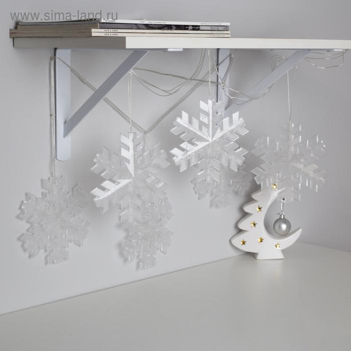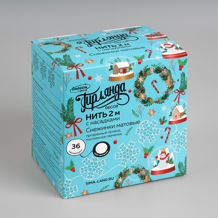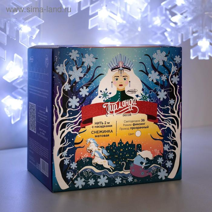 Гирлянда «Нить» 2 м с насадками «Снежинка матовая», IP20, прозрачная нить, 36 LED, свечение белое, 220 В