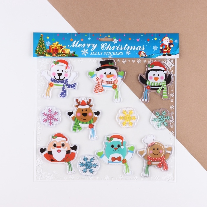 Наклейки на окна "Новогодние" снеговик, пингвин, 28 х 25 см