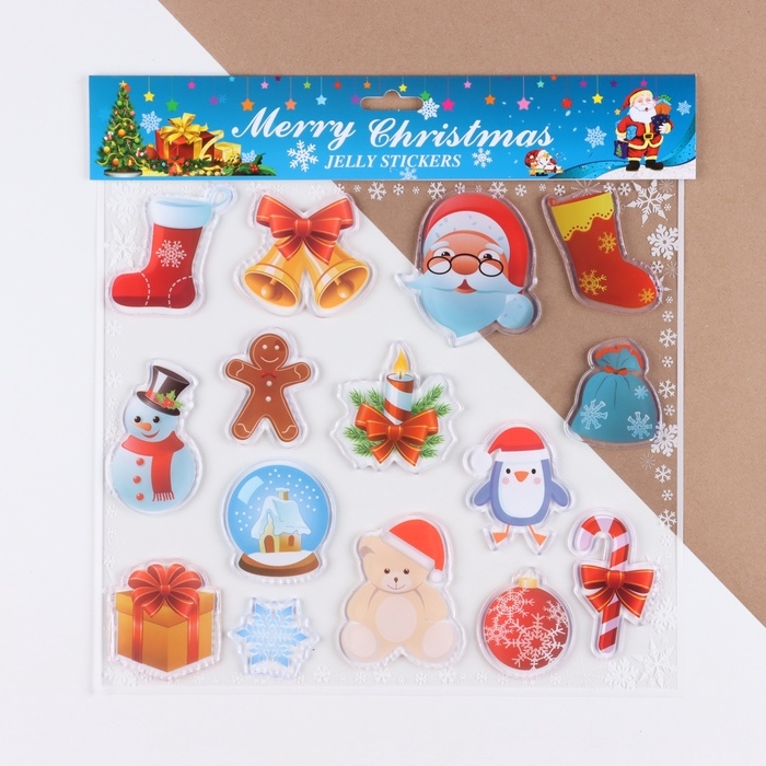 Наклейки на окна "Новогодние" Дед Мороз, колокольчики, 28 х 25 см
