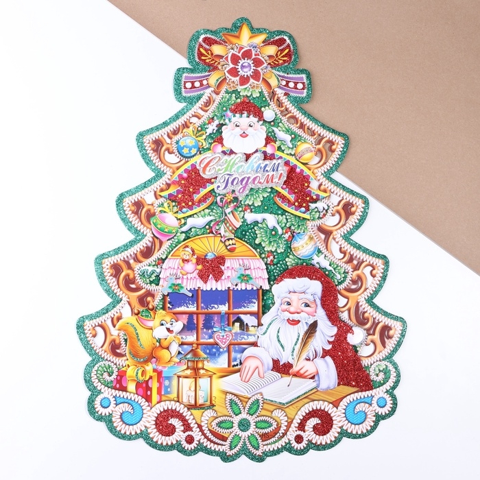 Плакат на стену "Новогодние" елка, Санта Клаус, 40 х 52 см