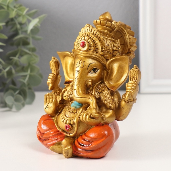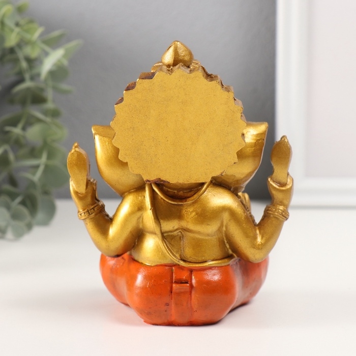 Сувенир полистоун под бронзу "Ганеша, в оранжевых шароварах" 10х10х12,5 см