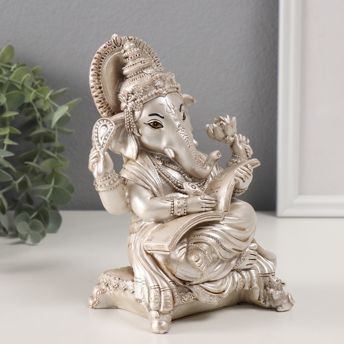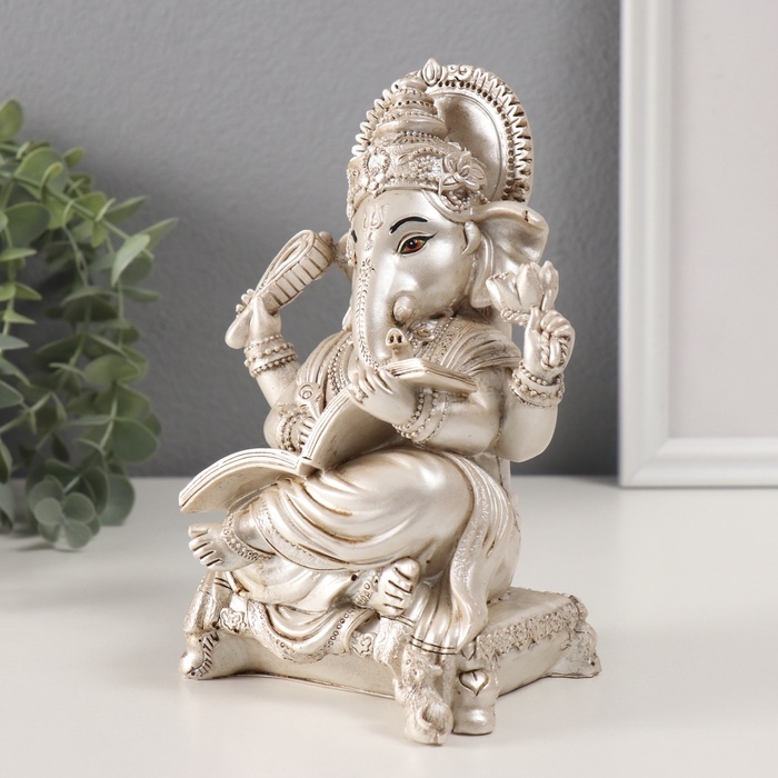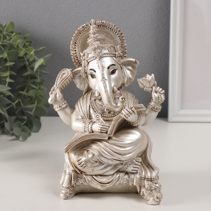 Сувенир полистоун "Ганеша на подушке, с книгой" состаренный с перламутром 10х13,5х18 см