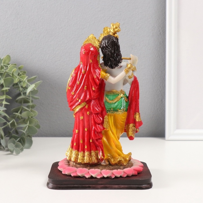 Сувенир полистоун "Радха и Кришна" красно-жёлтый 10,5х13х22 см