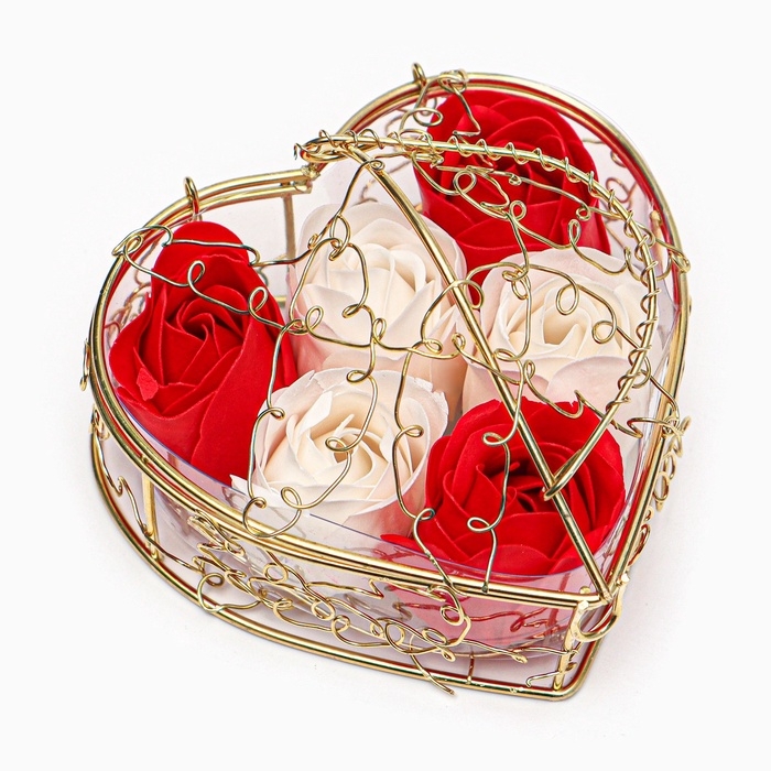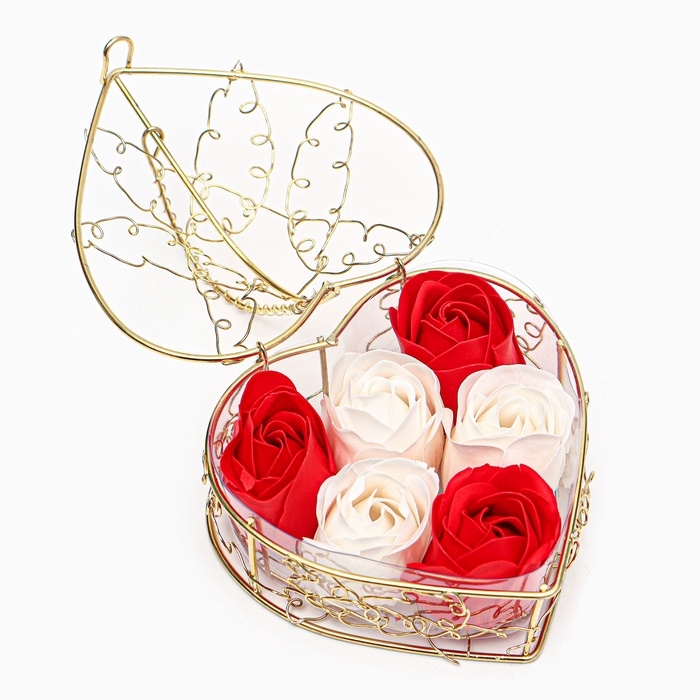 Набор бело-красных мыльных роз в золотой шкатулке, 6 шт — прекрасное сочетание белых и красных оттенков символизирует гармонию и любовь, а роскошная золотая шкатулка добавляет нотку изящества и торжественности.