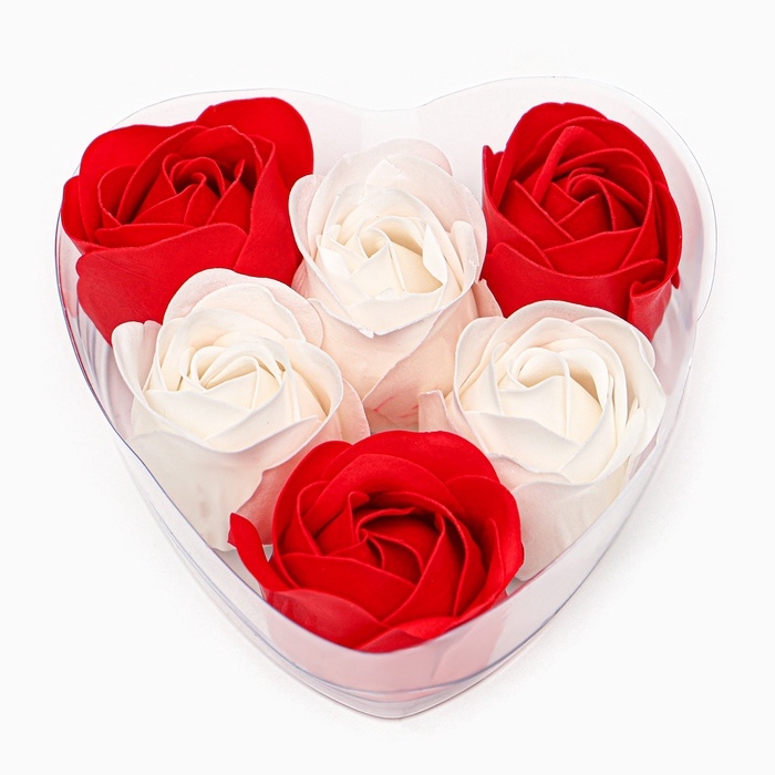 Подарочный набор мыльных бело-красных роз в шкатулке, 6 шт