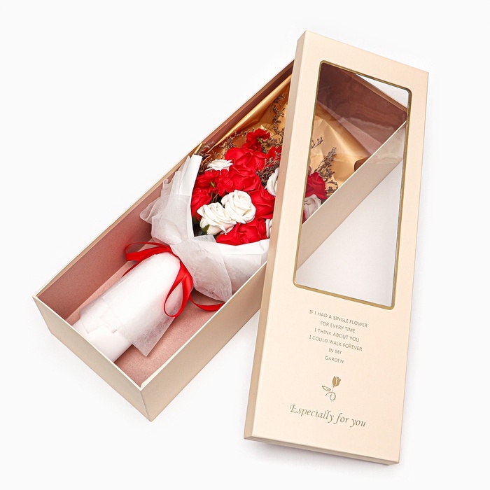 Состоит из 20 роскошных цветов, выполненных из мыльного материала, который внешне не отличим от живых бутонов. Прекрасный выбор как для украшения интерьера, так и для оригинального презента, который сохранит свою красоту и символику на долгие годы.