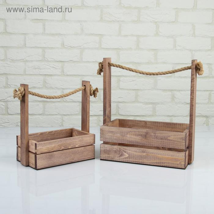 Набор кашпо деревянных 2 в 1 (25.5×15×30; 20×12×23 см) "Аром", ручка канат, состаренный дуб