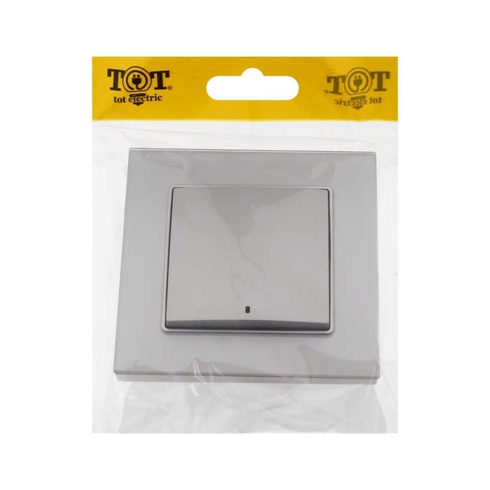 Выключатель TOT Matte Glass, 10 А, 1 кл., с подсветкой, скрытый, стекло, серебристый