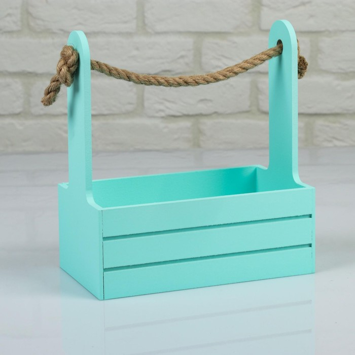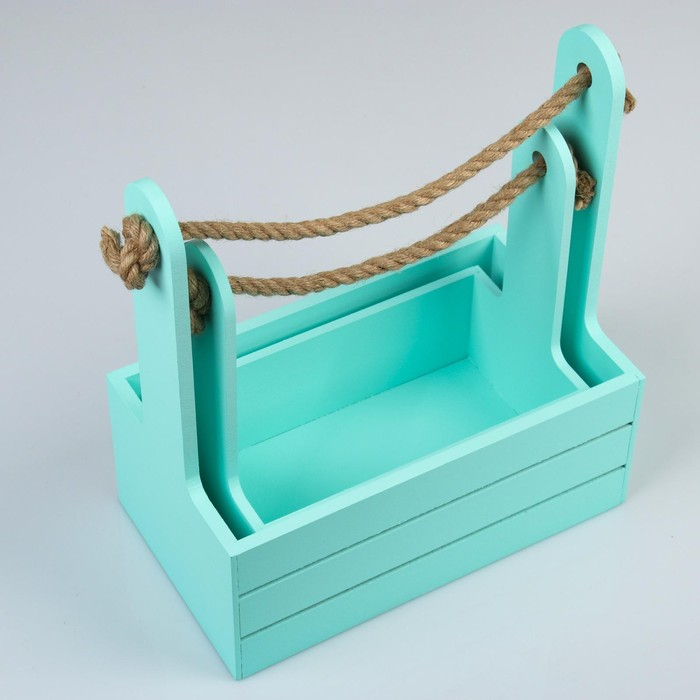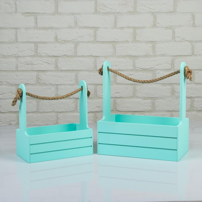 Набор кашпо деревянных 2 в 1 (25×15×30; 21×12×23 см) "Dear", ручка канат, мята