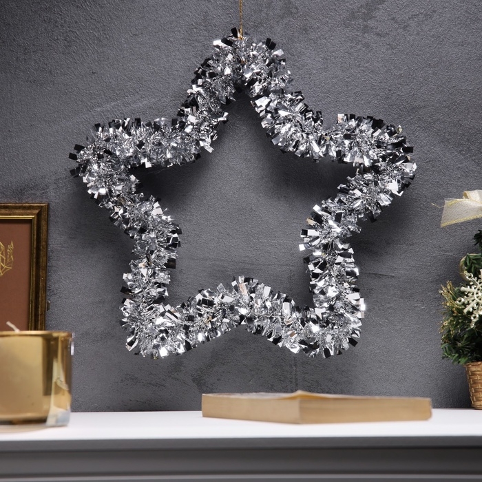 Светодиодная фигура из мишуры «Звезда красная» 30 × 5 см, 20 LED, батарейки AG10х3 (в комплекте), свечение тёплое белое