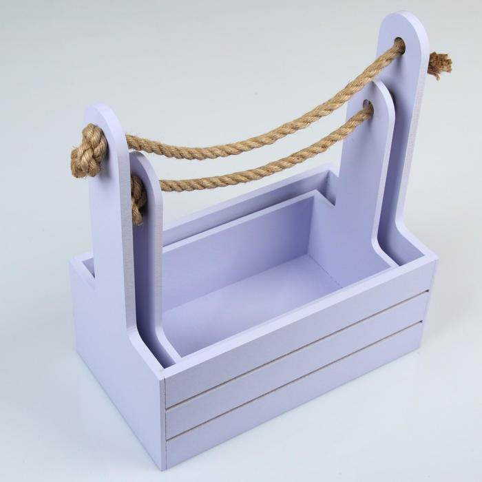 Набор кашпо деревянных 2 в 1 (25×15×30; 21×12×23 см) "Dear", ручка канат, лаванда