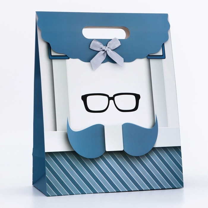 Подарочная коробка-пакет, упаковка с вырубной ручкой, "Настоящему мужчине" , 24 х 12 х 31 см