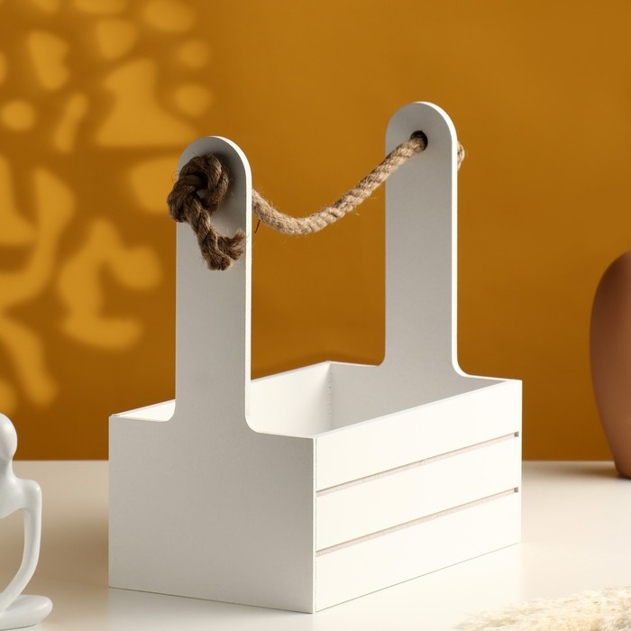 Кашпо деревянное 25.5×15×30 см "Аром", ручка канат, белое