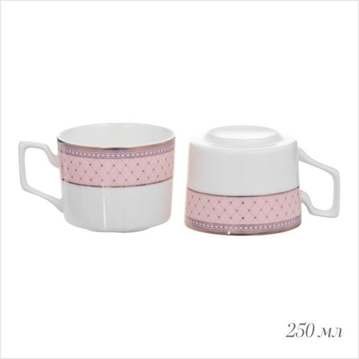 Сервиз фарфоровый чайный Доляна «Вивьен», 12 предметов: 6 чашек 200 мл, 6 блюдец d=15 см, цвет розовый