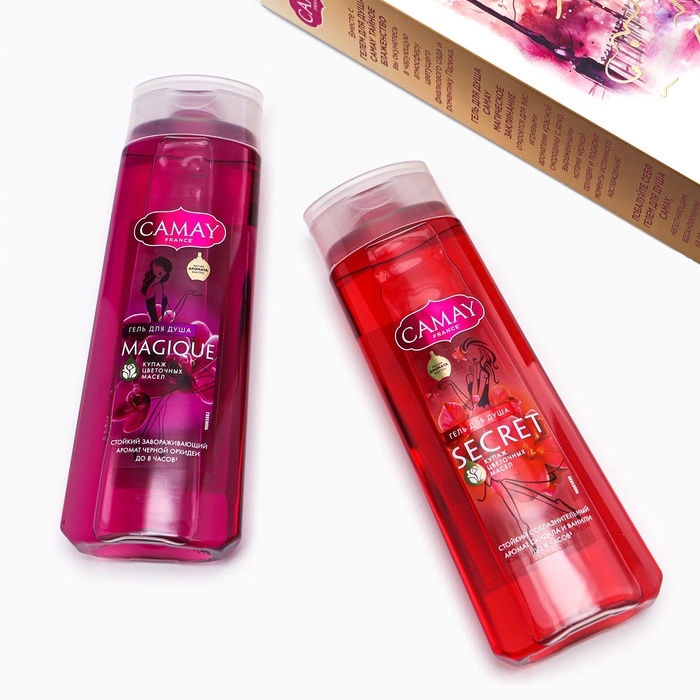 Подарите магию парфюма вместе с набором качественной уходовой косметики для женщин Camay Секрет. В составе набора парфюмированные гели для душа Тайное блаженство и Магическое заклинание.