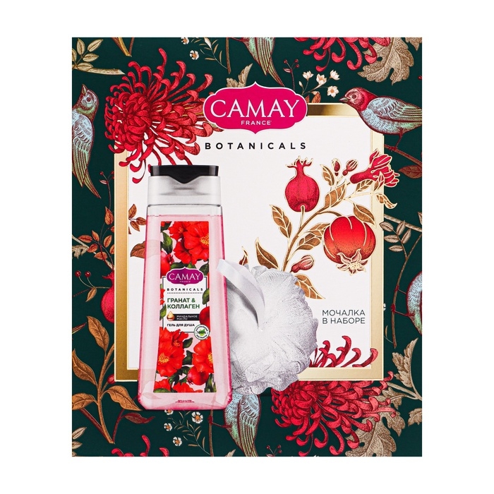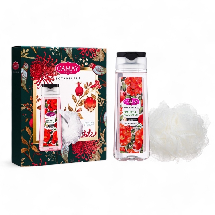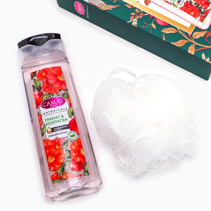 Подарочный набор женский CAMAY "Цветы граната": гель для душа, 250 мл + мочалка