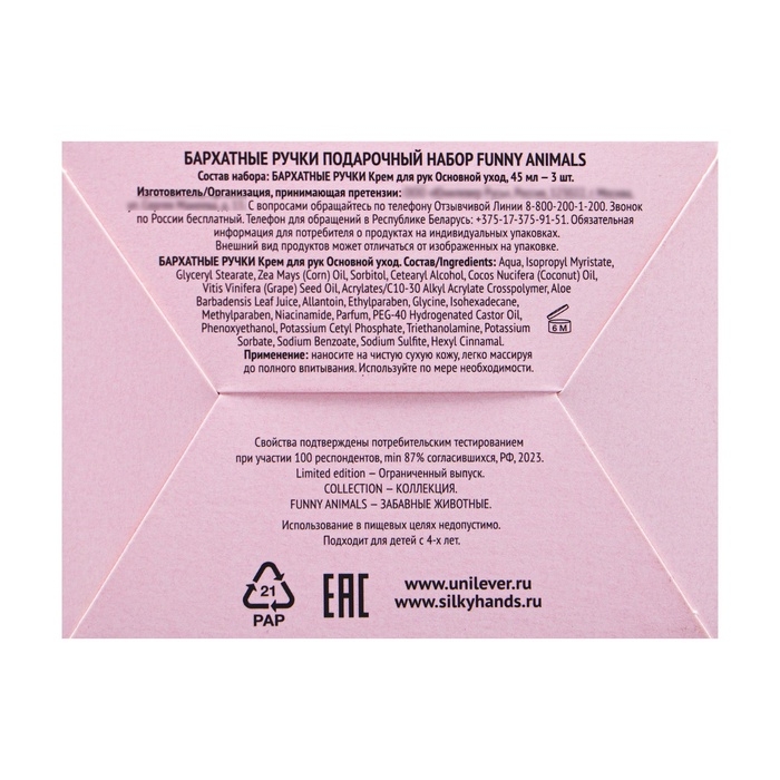 Подарочный набор женский Бархатные ручки "Funny animals": крем для рук 3 шт по 45 мл