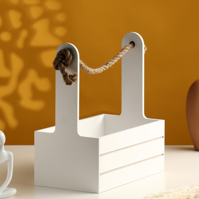 Кашпо деревянное, 23×10×14 см "Новогоднее. Санки", подарочная упаковка, белое