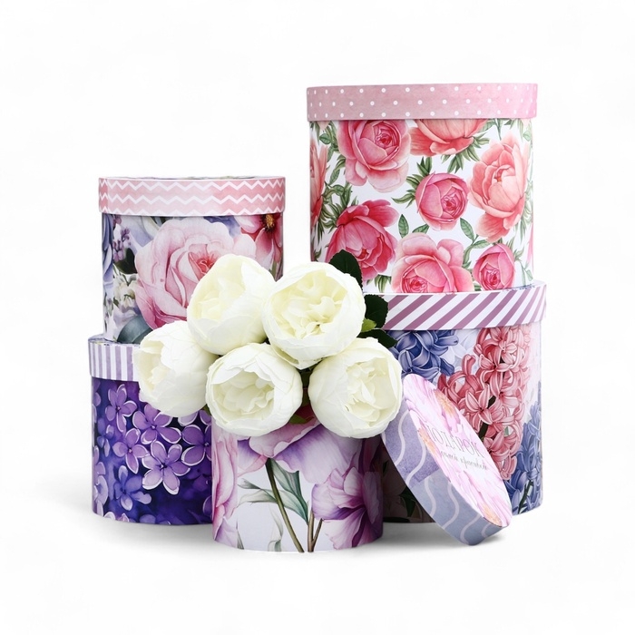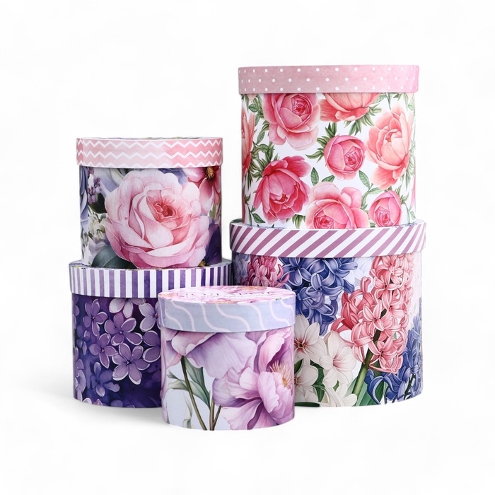 Не упустите возможность подарить радость своим близким — заказывайте набор шляпных коробок для цветов 5 в 1 и создавайте незабываемые моменты!
