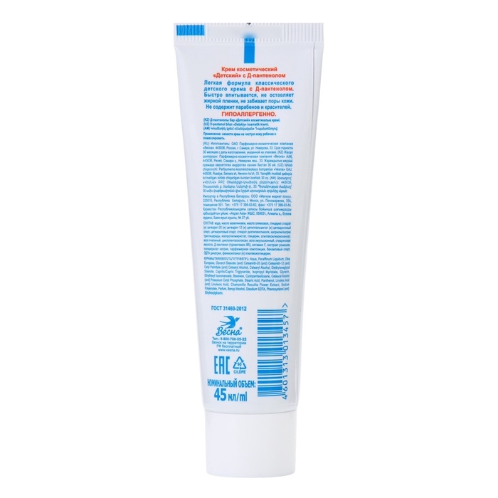 Детский крем "Весна" гипоаллергенный, с Д-пантенолом, 45 мл