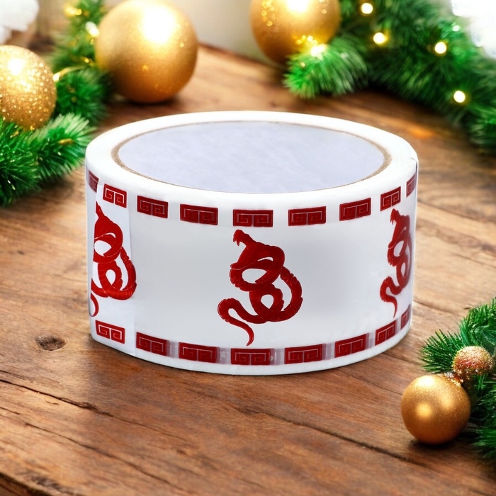 Новогодний скотч с логотипом «Змея» — идеальное решение для тех, кто хочет сделать упаковку своих подарков незабываемой и стильной. Размер скотча составляет 48 мм на 45 метров, а толщина — 45 микрометров, что гарантирует надёжность и прочность упаковки.