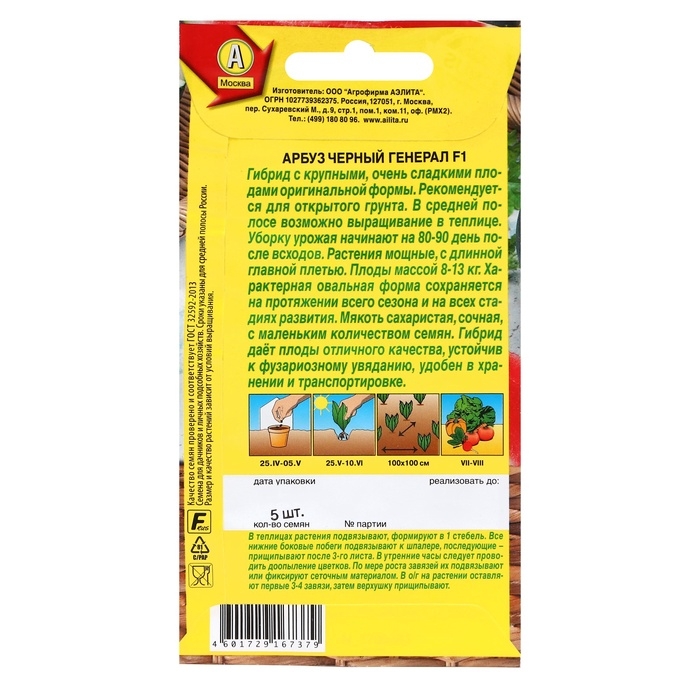 Семена Арбуз "Черный генерал" F1, ц/п, 5 шт