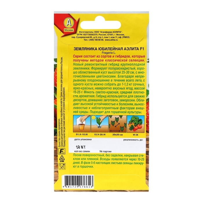 Семена Земляника "Юбилейная Аэлита" F1, ц/п, 10 шт