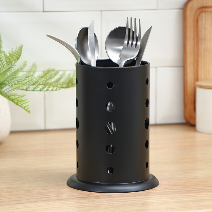 Сушилка для столовых приборов Доляна «Эстетика», 11,2×11,2×16,5 см, цвет чёрный