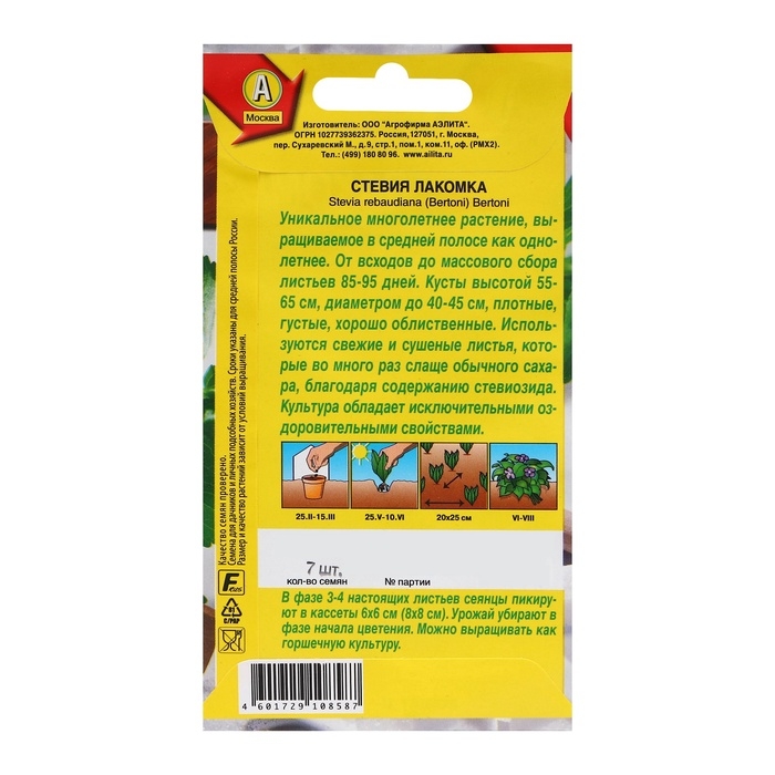 Семена Стевия "Лакомка", ц/п, 7 шт