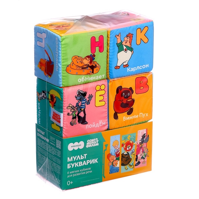 Набор развивающих мягких кубиков Мякиши «МультБукварик», Союзмультфильм, 8×8 см