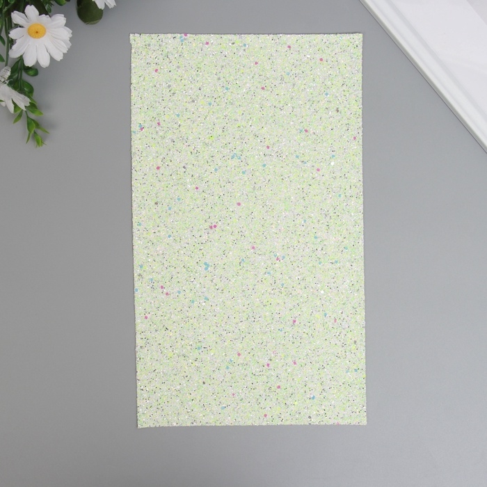 Лист для творчества иск.кожа "Блёстки" бело-зелёный лист 33х20 см толщина 1,6 мм