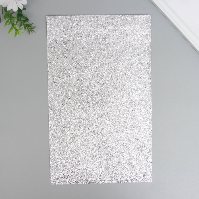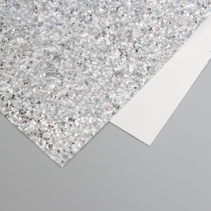 Лист для творчества иск.кожа "Крупные блёстки" серебро лист 33х20 см толщина 0,84 мм