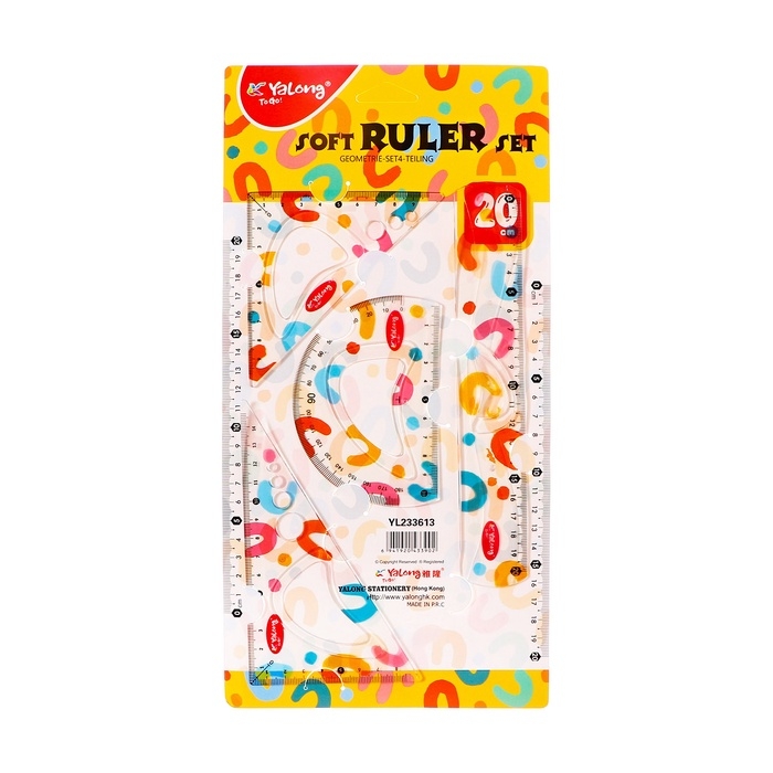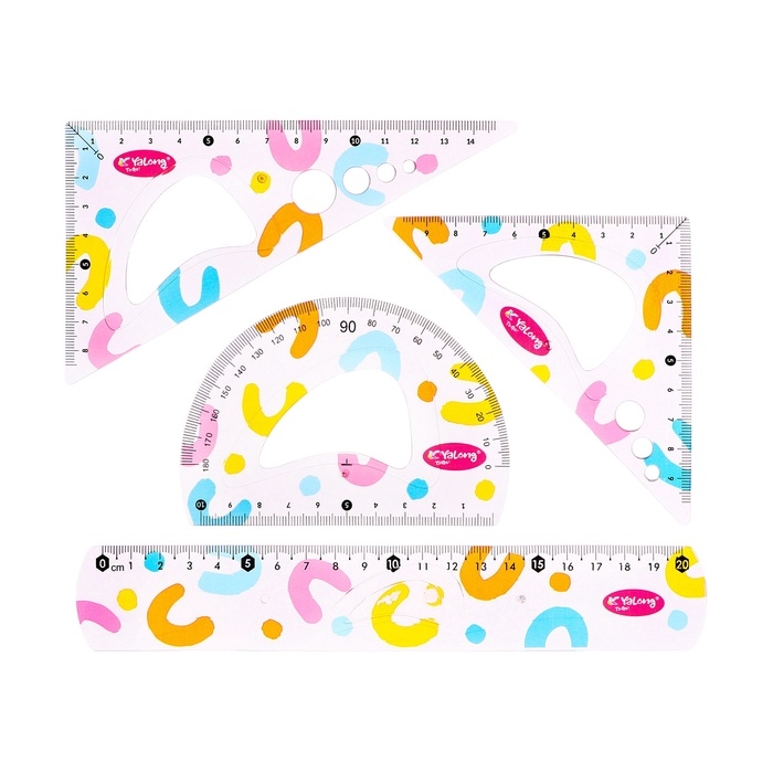 Набор геометрический гибкий силиконовый (линейка 20см+2 угольника+транспортир) Абстракция